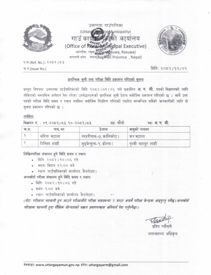 » प्रारम्भिक सूची तथा परीक्षा मिति प्रकाशन गरिएको सूचना ।