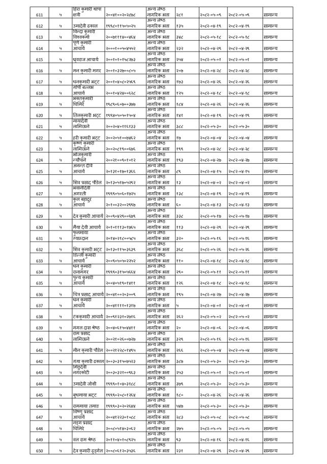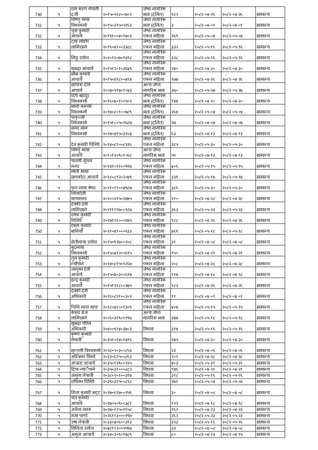 प्रारम्भिक सूची तथा परीक्षा मिति प्रकाशन गरिएको सूचना ।