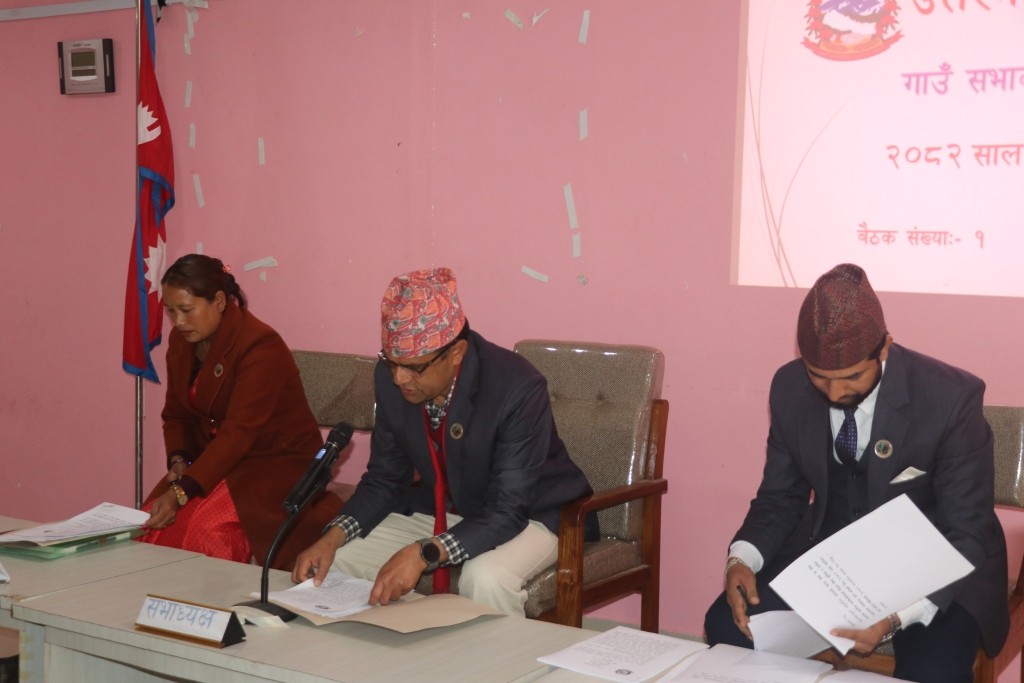 गाउँपालिकाको प्रधानाध्यापक बैंठक गाउँपालिकाका अध्यक्ष श्री माधव अर्यालज्युको अध्यक्षता तथा उपाध्यक्ष,प्रमुख प्रशासकिय अधिकृत,गाउँ शिक्षा समितिका सदस्य हरु,सामुदायिक विद्यालय व्यवस्थापन समितिका अध्यक्ष तथा प्रधानाध्यापक को संयुक्त बैठक मिति २०८२/०९/१४ गते
